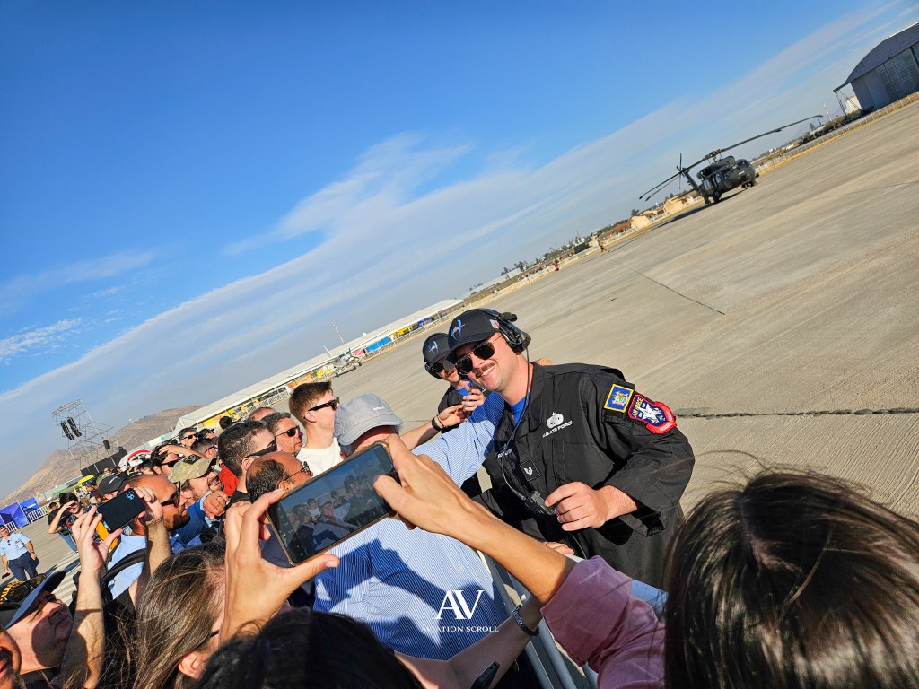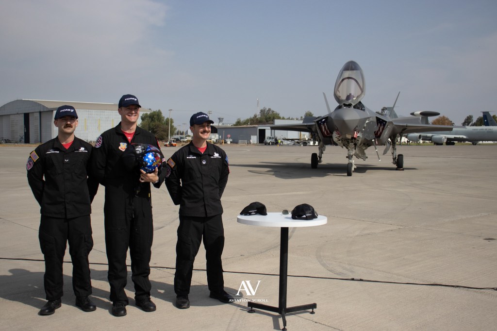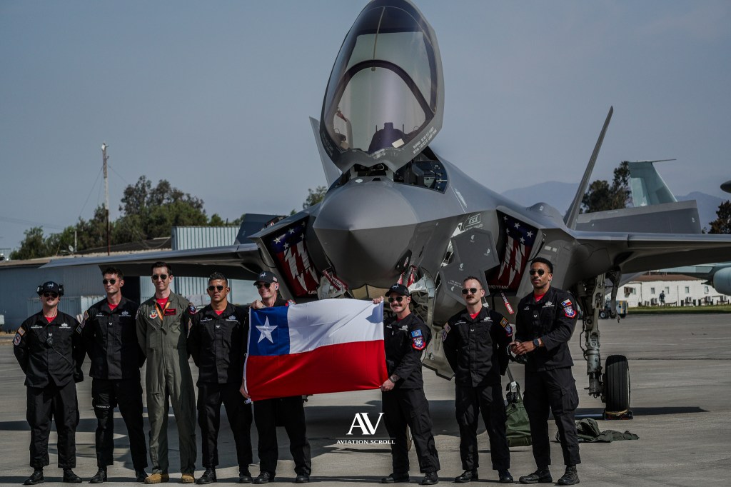 Gracias a la gestión de la organización de FIDAE, se pudo concretar una entrevista al equipo completo del F35 Demo Team en un espacio dedicado a la prensa post demostración de vuelo el pasado viernes 10. Donde también hemos podido registrar las mejores imágenes de ese vuelo por la condición climática. Esta entrevista, de pocas preguntas, nos permitió conocer a las personas detrás de todo esto, y también de tener a pocos metros sin barreras a la aeronave en cuestión. También pudimos disfrutar en primera persona de la “ceremonia” de fin del show que tiene preparado este equipo. Esta entrevista estará en otra nota.