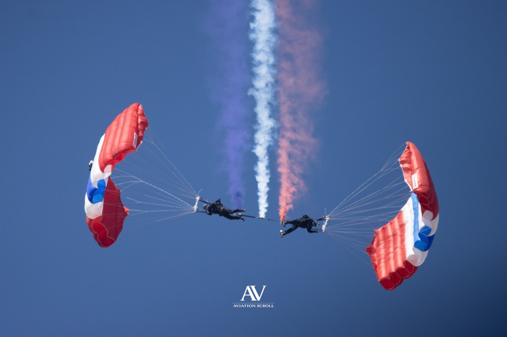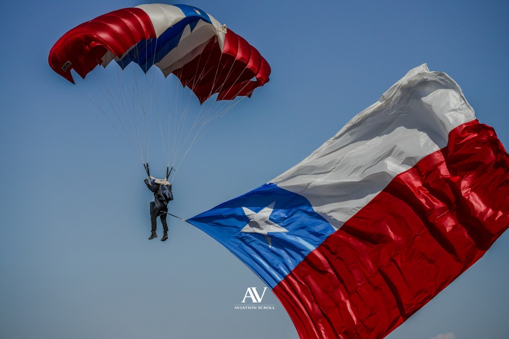 - Wings of Blue de Estados Unidos (paracaidismo) participando un Hércules C130J de la Guardia Nacional de EE.UU.