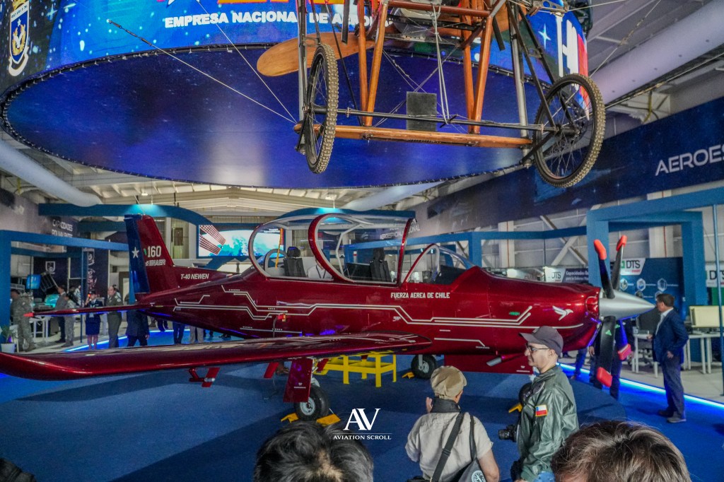 - En el hall donde principalmente estaba ENAER, presentó al público el T-40 Newen, avión de entrenamiento básico, sucesor y evolución del T-35 Pillán, se espera que comience el proceso de certificación para si comercialización y adopción por parte de la Fuerza Aérea de Chile; y que también ha sido presentado a delegaciones.