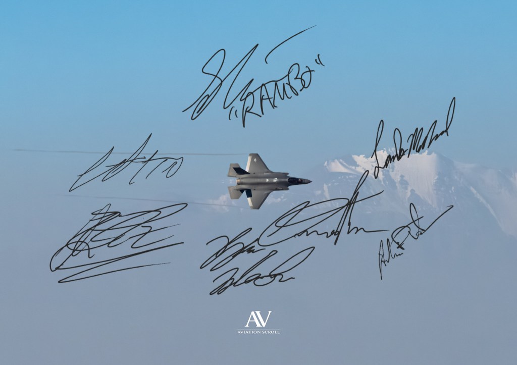 Esta nota comienza con lo que resume lo que fue para nosotros FIDAE 2026. El F35 Demo Team de un día para el otro nos firma la foto para el recuerdo de este evento.