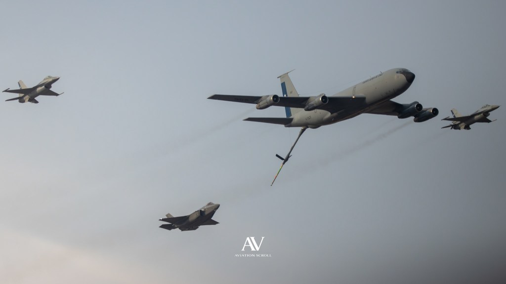También se ha hecho en dos oportunidades una formación que recorrió los cielos de Santiago, el viernes 10 y sábado 11 de abril al cierre del evento. La primera KC-135, F16 de la FACH junto al F35 de la USAF. Y la restante con el KC-135 (reabastecedor en vuelo basado en el Boeing 707), y F16 de la FACH.