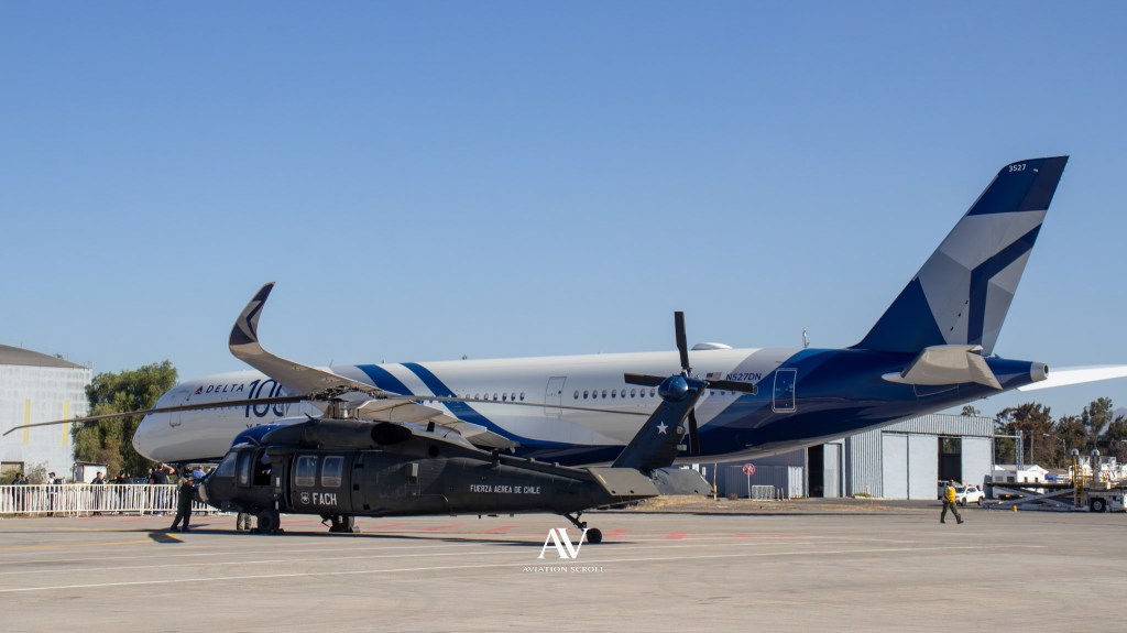 - Airbus y aprovechando también los 100 años de Delta, presentó un A350-900 en donde hubo visita para prensa y también visita al público general; el primer día estuvo el livery de los 100 años de Delta y días posteriores otro A350 con el livery estándar de la compañía norteamericana.